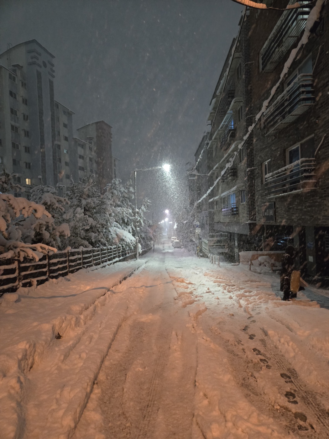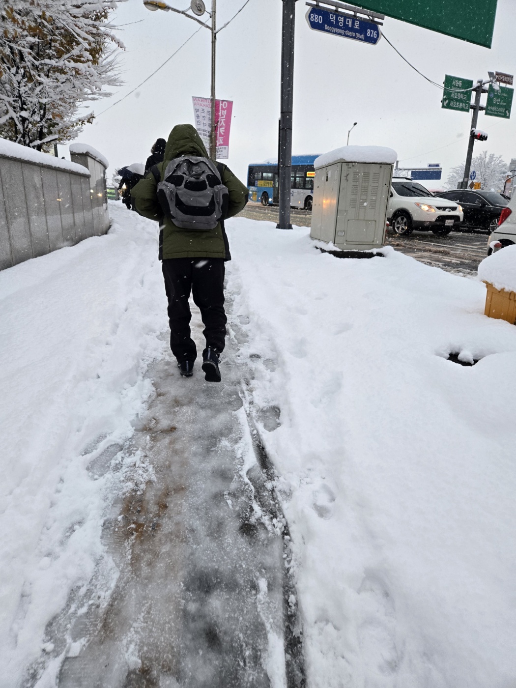 첫눈이 이렇게 강렬하게 올줄은 몰랐는데, 낭만을 느끼기도 전에 생활에서의 불편함을 겪어 많은 분들이 힘들어했을거 같다. 나도 퇴근하고 여자친구와 오면서 눈의 아름다움이 눈에 들어왔지 그 전까지는 미쳤다 라는 말밖에 안나왔다.