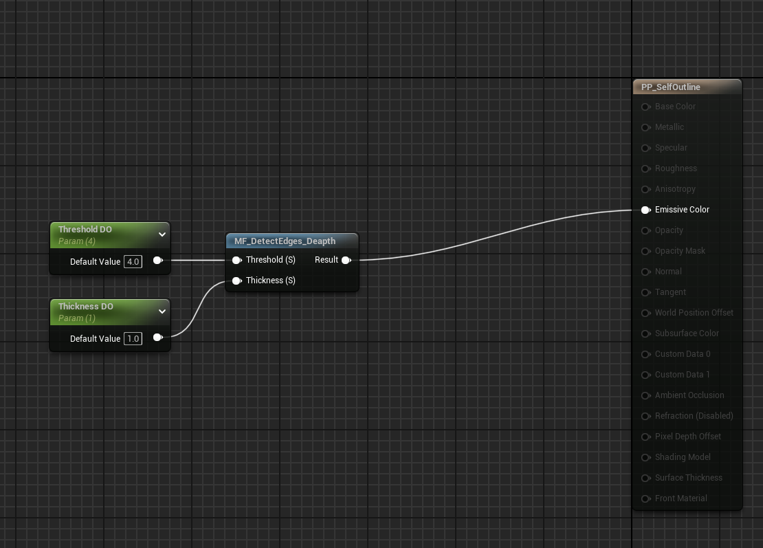 다시 메테리얼 function을 만들고, 먼저 선의 두께를 constant 1 로 설정하고, 임계값 설정을 constant 4로 설정해 놓는다 (Outline 판별 기준값)