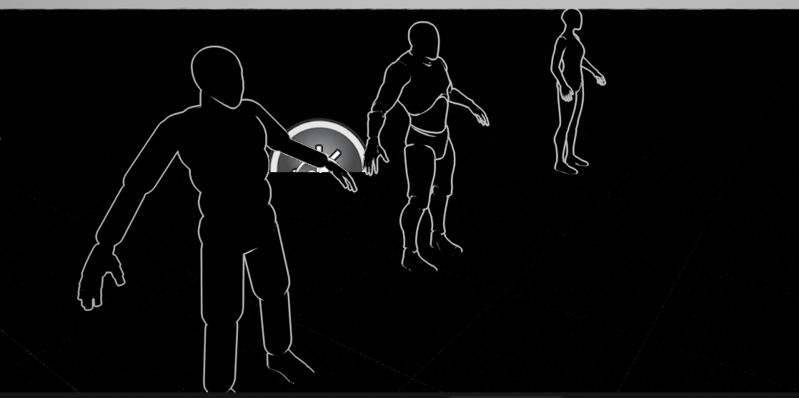 이후 SceneTexture- postprocess의 Compoennt Mask 의 RGB 값을 lerp 하게 되면, 원래 색깔은 유지되고, depth 표시된 객체들은 Outline을 갖게 된다.